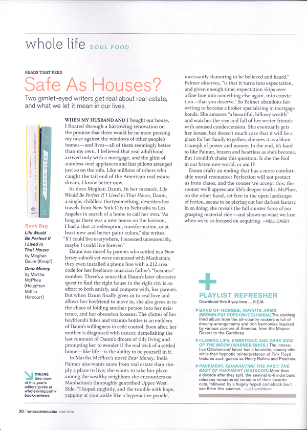 I am so grateful to Summer Smith, the HMH publicist. Next week, June 3rd, is the publication date of Dear Money. She’s booked me on the Leonard Lopate Show at noon (please listen) and that night I’ll be reading at Barnes & Nobel on Broadway at 82nd Street (please come). Because of her hard work the book was mentioned as one of ten books to read in O Magazine; it was one of the five top summer beach reads in Coastal Living; it was reviewed in Martha Stewart’s Whole Living; it’s scheduled to appear in Elle and More; and reviews have been assigned at the Boston Globe, The New York Times, The San Francisco Chronicle; The Washington Post — these are the ones I know about. Thank you, Summer Smith.