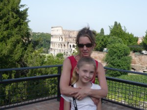 In the backyard of Augustus’s house in the Foro Romano.  Yes, that’s the Coliseum in the background.  She really does believe she was Livia, Augustus’s wife, in a previous life.  This trip to Rome has been a pilgrimage to sites from that world of hers.