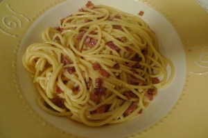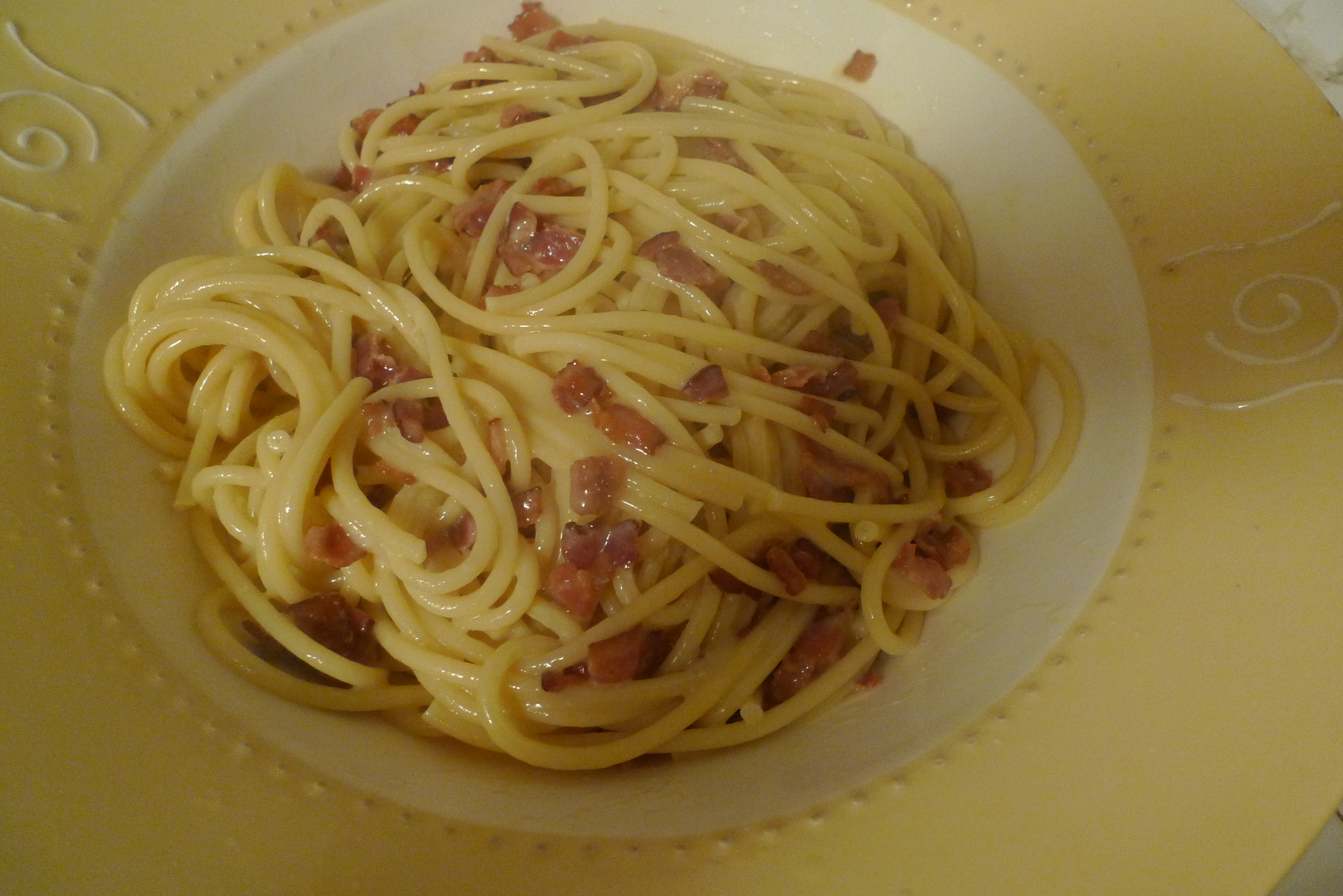 FACT and HINT: A real carbonara should have NO cream. Mistrust any recipe that involves cream.