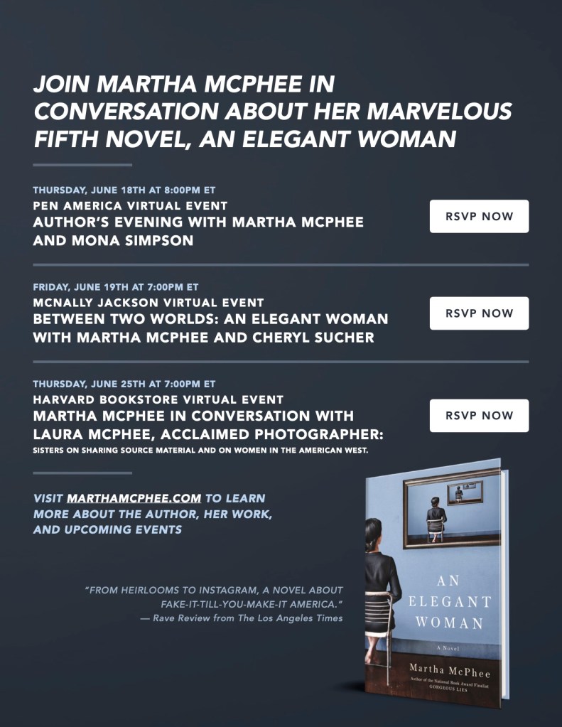 My novel, An Elegant Woman, coming, June 2. Help a friend, help a bookstore — pre-order today. Buying options HERE. Thank you.