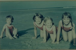 About once a week a stranger visits my site by googling “girls in patent leather boots.” I don’t want to know what he is hoping to find, but on his quest he stumbles upon my sister and me. As far as as I can remember I have never written a post about or used the term “patent leather boots.” So be it. Now I am. As a little girl I wanted white patent leather boots so badly I wrote it on my Christmas list for three years in a row. (My parents searched and searched, but could not find them in a child’s size.) Jenny had black patent leather boots, therefore I wanted white — the same but different, maybe even better. In this picture, I’m wearing white knee socks. From a distance, I hoped, they looked like leather. We’re standing on the wing of my mother’s divorce lawyer’s airplane. His name was Henry Hill and he used to fly over our house upside down just for fun. “Oh there’s Henry,” Mom would say, rushing out to the deck, looking up at the sky. And there he was, swooping all around, flirting with my mother even though both were involved with others. The plane would disappear, but before long he’d show up with a girl on his arm for a dip in the steamy indoor swimming pool, the water so hot it wrinkled your skin, underwater speakers playing Neil Young and Bob Dylan — the little kids (there were ten of us in all) told to stay out because it was “adult time” in the pool. In the summers, Henry would fly us up to Maine to dig clams for an afternoon. Here, in the picture, we’re near Prout’s Neck. I have no idea what we’re staring at, but I love our contrasting expressions: Jenny is a little skeptical, mouth pinched closed, hoping, though, to be disproven; I’m a little in awe, a bit afraid. I can feel the cool salt air, smell it mixed with pine. We don’t have pierced ears yet and last year’s dresses are more fashionable now because we’ve grown taller. Our mother has tied bows at the end of our braids. I’m clutching Juicy Fruit. Even so, with those boots and the desire for another pair, the adventures having already begun, jetting around with a divorce lawyer, we’re reaching forward toward the adult world.