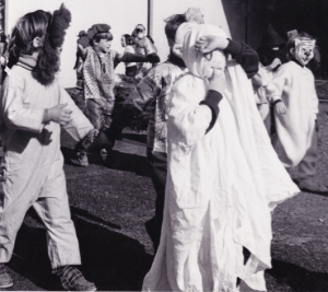 The dress was made by my grandmother from organdy, the flowers at the shoulders all hand-stitched. Mom’s daughters (I won’t mention which ones) wore the dress to their black tie dances in the 1970s and destroyed the dress from too much dancing.