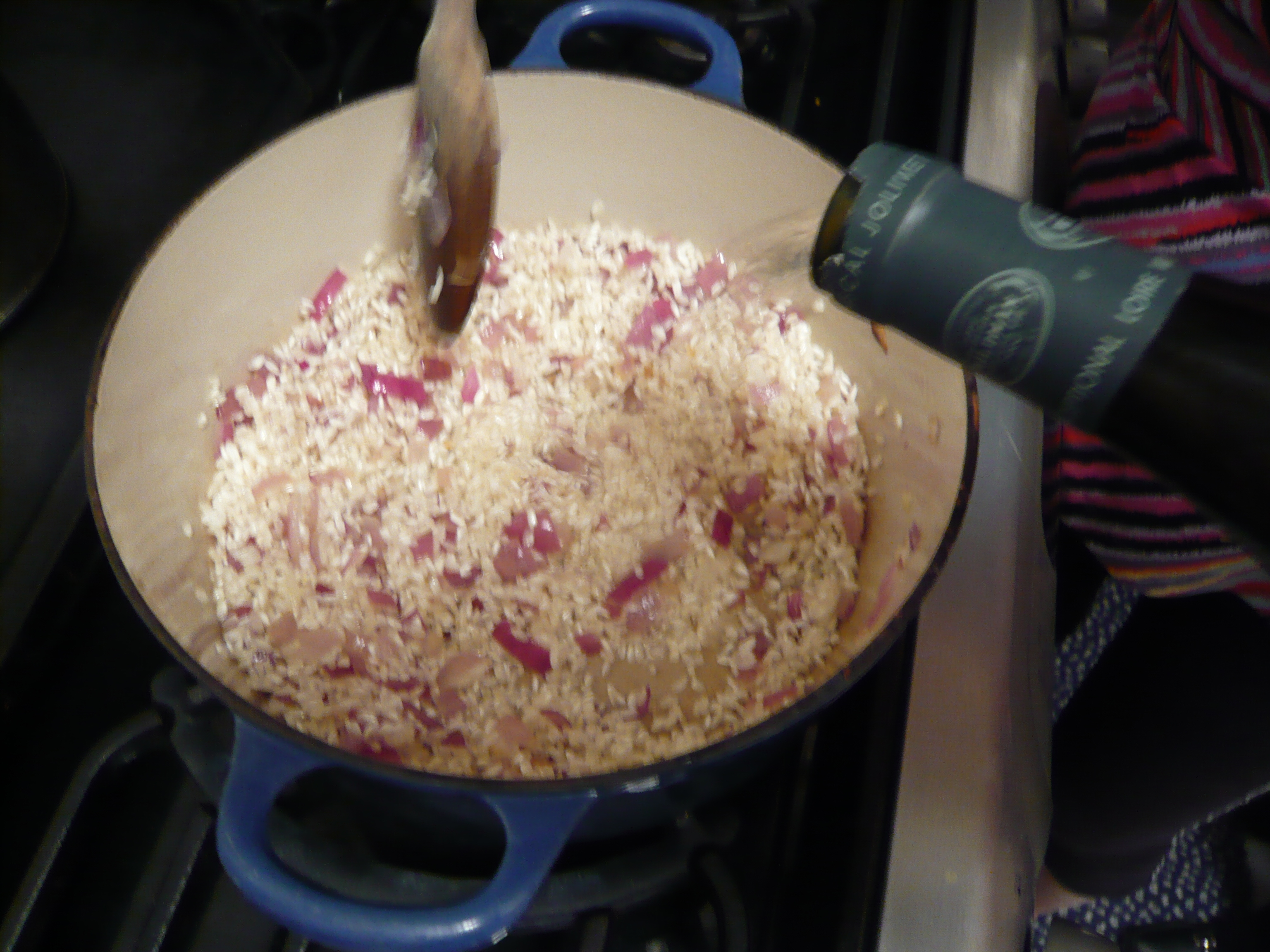 Adding the wine.