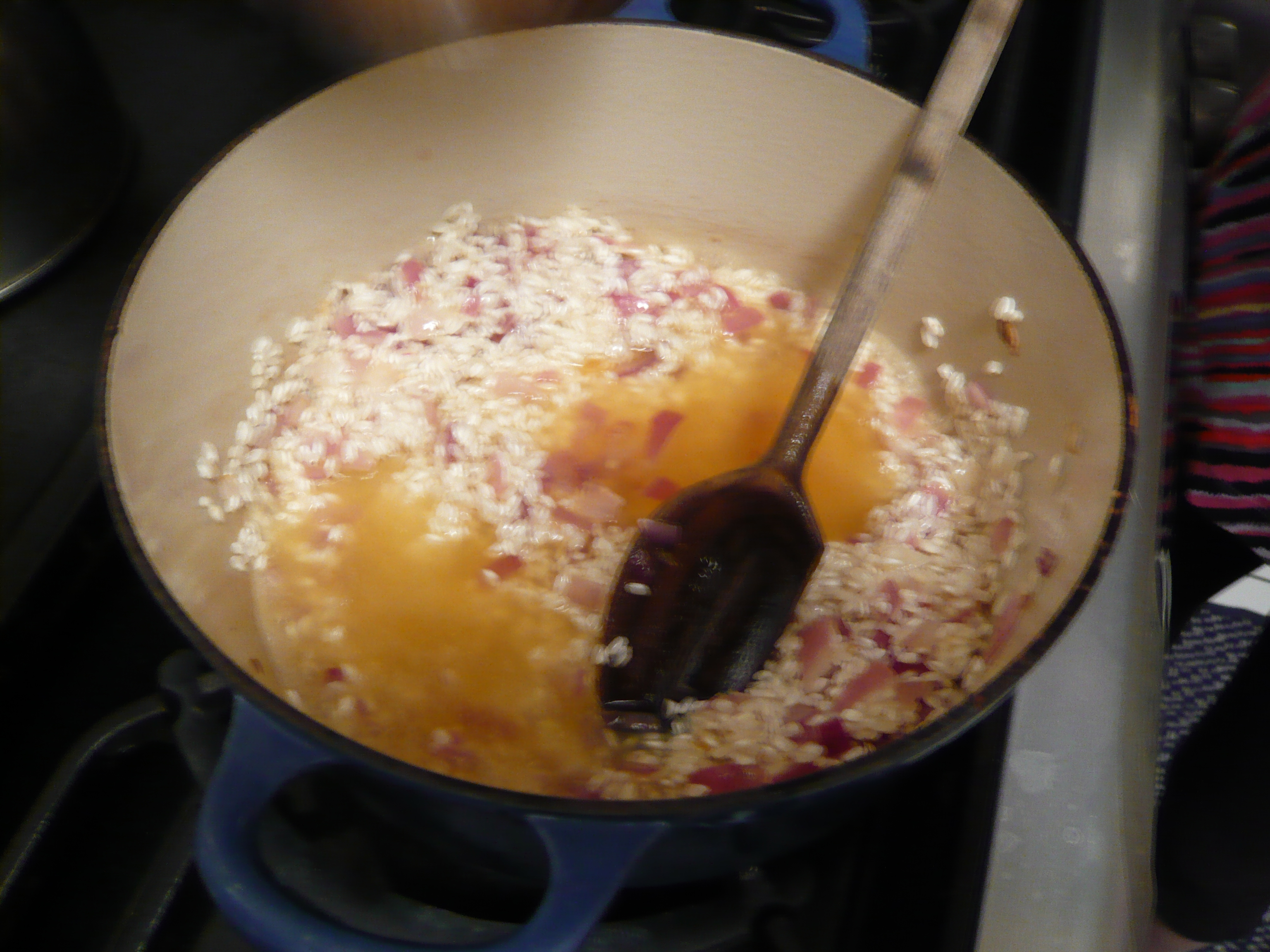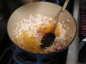 Absorbing the wine and the first bit of stock.