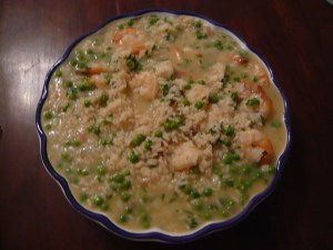 Shrimp Risotto (serves four — doubles, triples easily, as long as you follow the secrets)