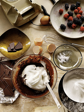 I bought my first recipe book during my junior year abroad in Florence: a leather-bound volume with a peacock-feather design in salmon, pink and tan, creamy blank pages and leather straps that tied it neatly closed. On the spine I had Martha’s Recipes printed in gold. I took it home to my small apartment with a view of the river Arno and called my father in Princeton. It wasn’t quite six am his time, but I wanted his recipe for chocolate mousse. His tired voice came over the static of the international connection, asking if everything was all right. Relieved to know that all I wanted was a recipe, he spilled it out from memory. “A real mousse,” he had said so many times, “has no cream.” In his version, adapted from Julia Child, the egg whites give it the light lift. He took his time explaining, “The egg yolks are beaten in a bath of warm water . . . the whites in a bath of ice water.” I scribbled it all down. My Italian boyfriend, Giulio, was arriving from Milan that night, and I wanted to make it for him. We would be together for six years. Now, some 25 years later, the book has fallen apart. The cover is lost. Pages have been torn out and stuck in any which way. Water and grease have smeared the ink and leaked through to other pages. But I still love my book. It occurred to me not so long ago, while thumbing through both my grandmothers’ recipes, that our collections are like archaeological artifacts, time capsules taking the reader to a past that can be reconstructed and relived through food….