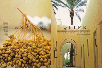 In the humble kitchen of the Kasbah du Toubkal mountain retreat, a Berber chef named Omar Errami, dressed in a traditional white robe and cook’s apron, chopped ingredients for a lamb, fig and walnut tagine. On the counter a clay pot sat on a wood fire; the oil in it sizzled as he added the lamb, heaps of red onion, ginger, garlic, saffron and a good amount of water. He covered the base with its conical top, propping it on a wooden spoon to let in air. He spoke no English, but our teacher and guide, Peggy Markel, carefully explained all that he was doing.